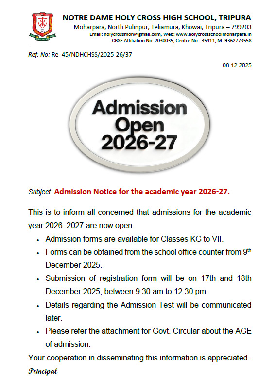 While, therefore, the prime purpose of the establishment of this Holy Cross School, Moharpara is the Education of the children in good character and principles. Children of all faiths irrespective of caste, tribe, creed or community are accepted.